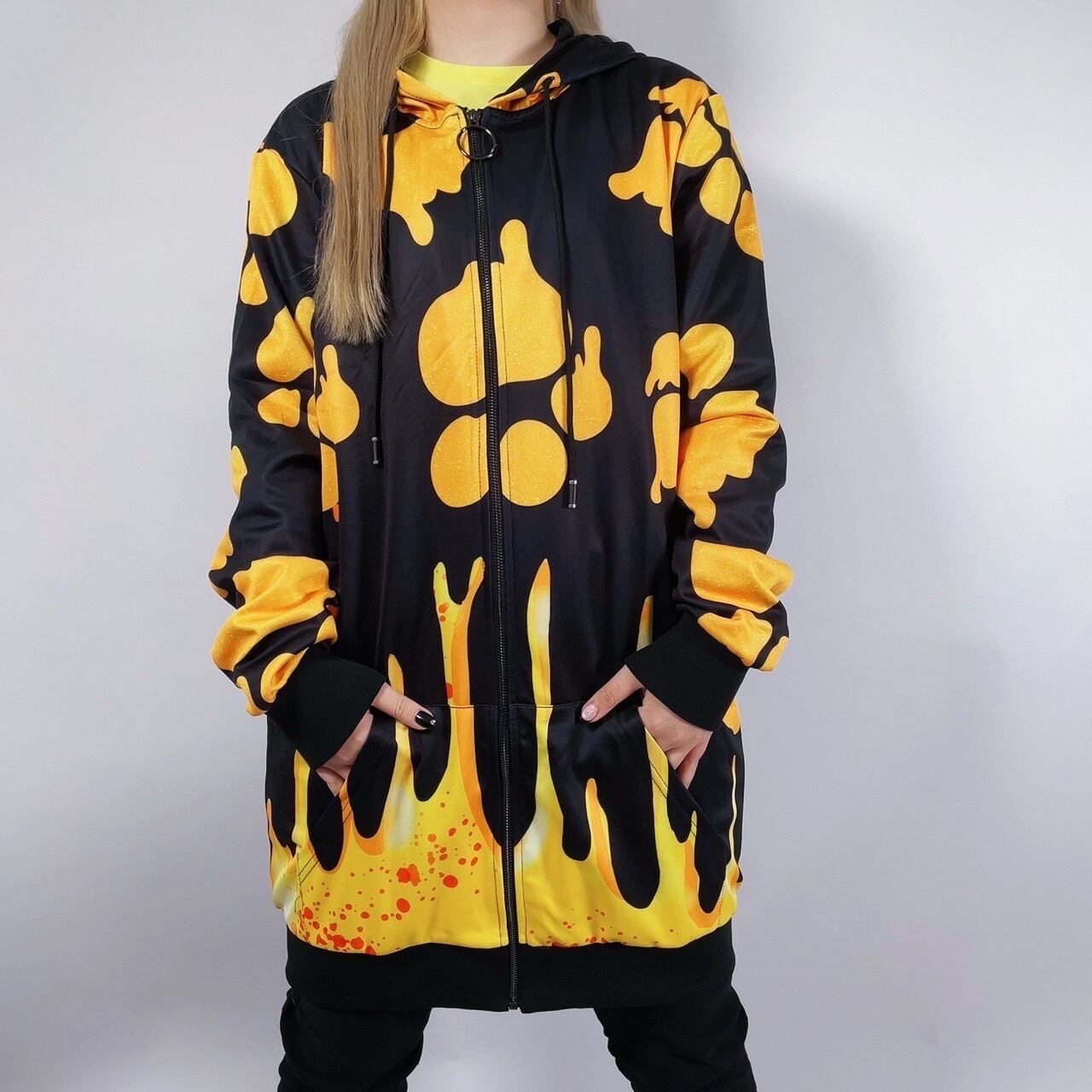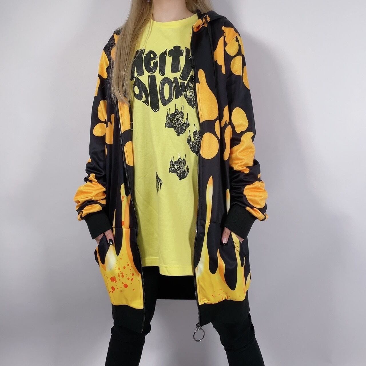 ORANGE×BLACKカラーがクールな総柄ZIP PARKAになります。